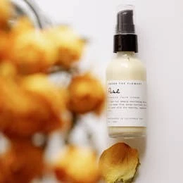 Use: massage a thin layer into clean skin. Ingredients: rose floral water, witch hazel, raw beeswax, evening primrose oil, rosehip oil, jojoba oil, baobab oil, marula oil, sea buckthorn, rose geranium.