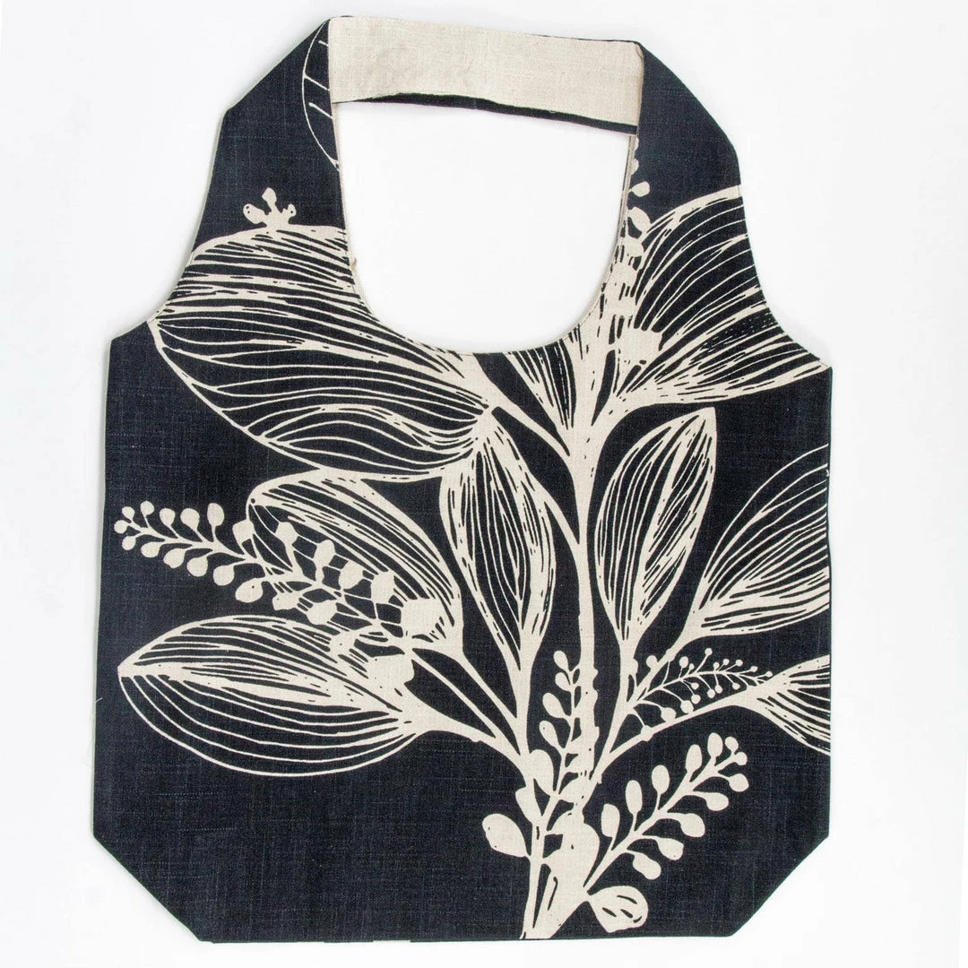 A large bag made from natural slub cotton. Beautiful original botanical prints are screen printed in various colors. 100% cotton.