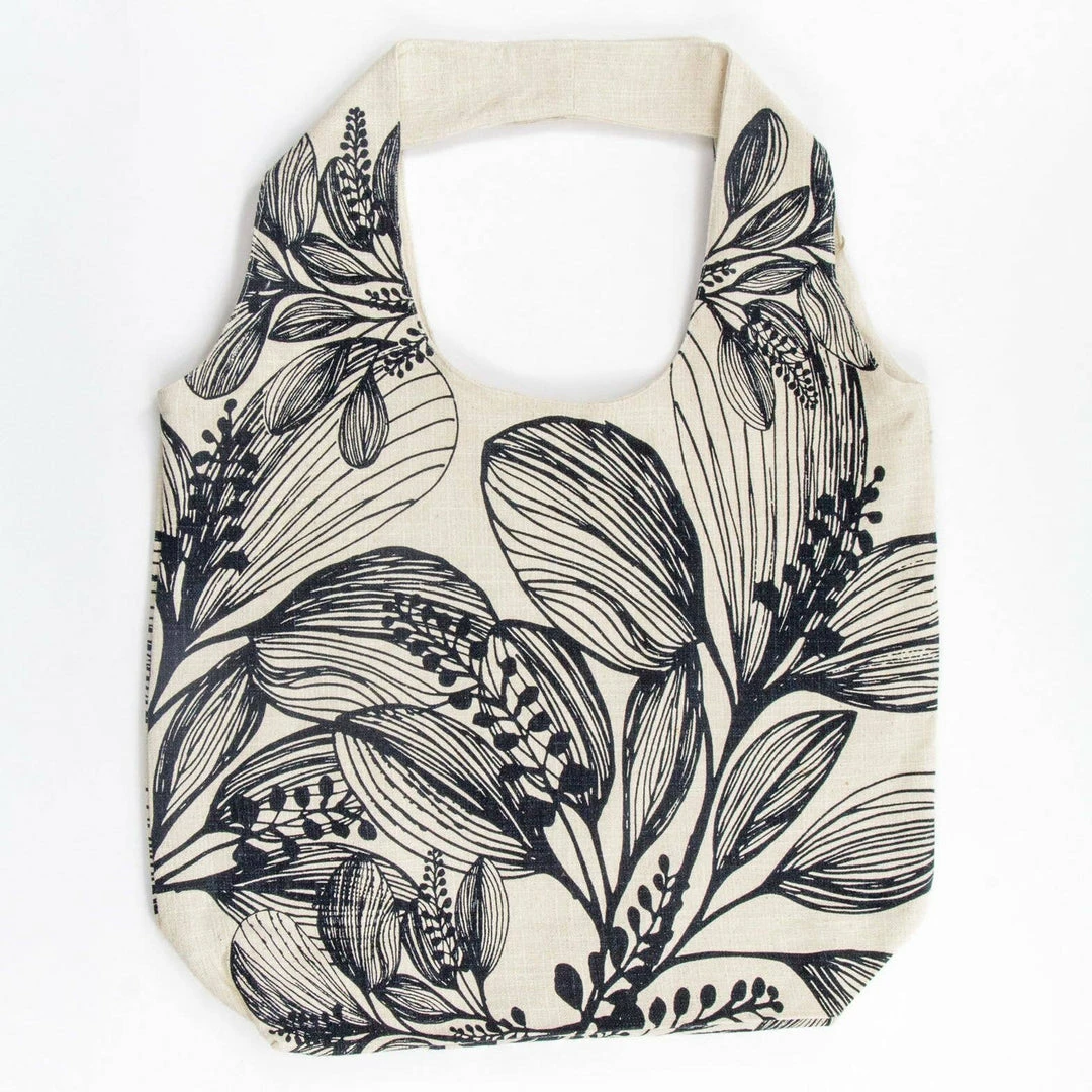 A large bag made from natural slub cotton. Beautiful original botanical prints are screen printed in various colors. 100% cotton.