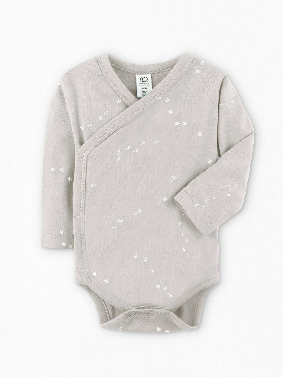 Our Kai long sleeve wrap kimono bodysuit is a baby essential! This super-soft organic cotton basic is the best base layer for mixing and matching. Made of 100% organic cotton. Interlock fabric Matching snaps are nickel free to prevent an allergic reaction. Sustainably and ethically produced with eco-friendly AZO / heavy metal free water-based dyes. Naturally hypoallergenic.