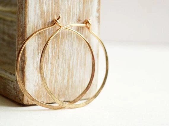 Simple gold filled hoop earrings handmade with thick gauge gold filled wire. They have hammered flat for strength and polished to bright shine. They are 1 inch hoop and very comfortable to wear. Great simple accessories for every day.