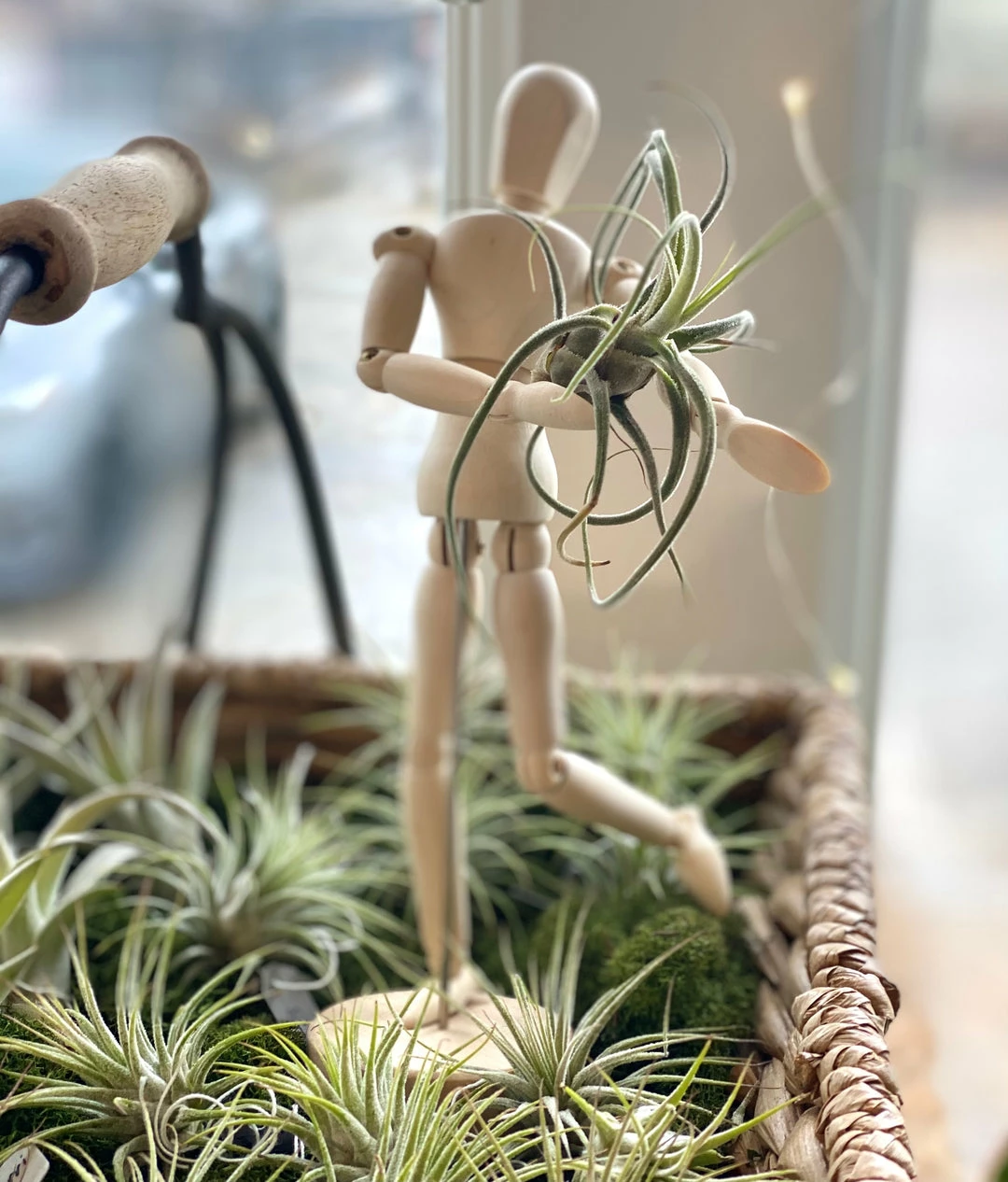 Wooden jointed mannequin air plant holder. Display has jointed flexibly. You can adjust his/her pose as you want. He/she can run, bow, stand!