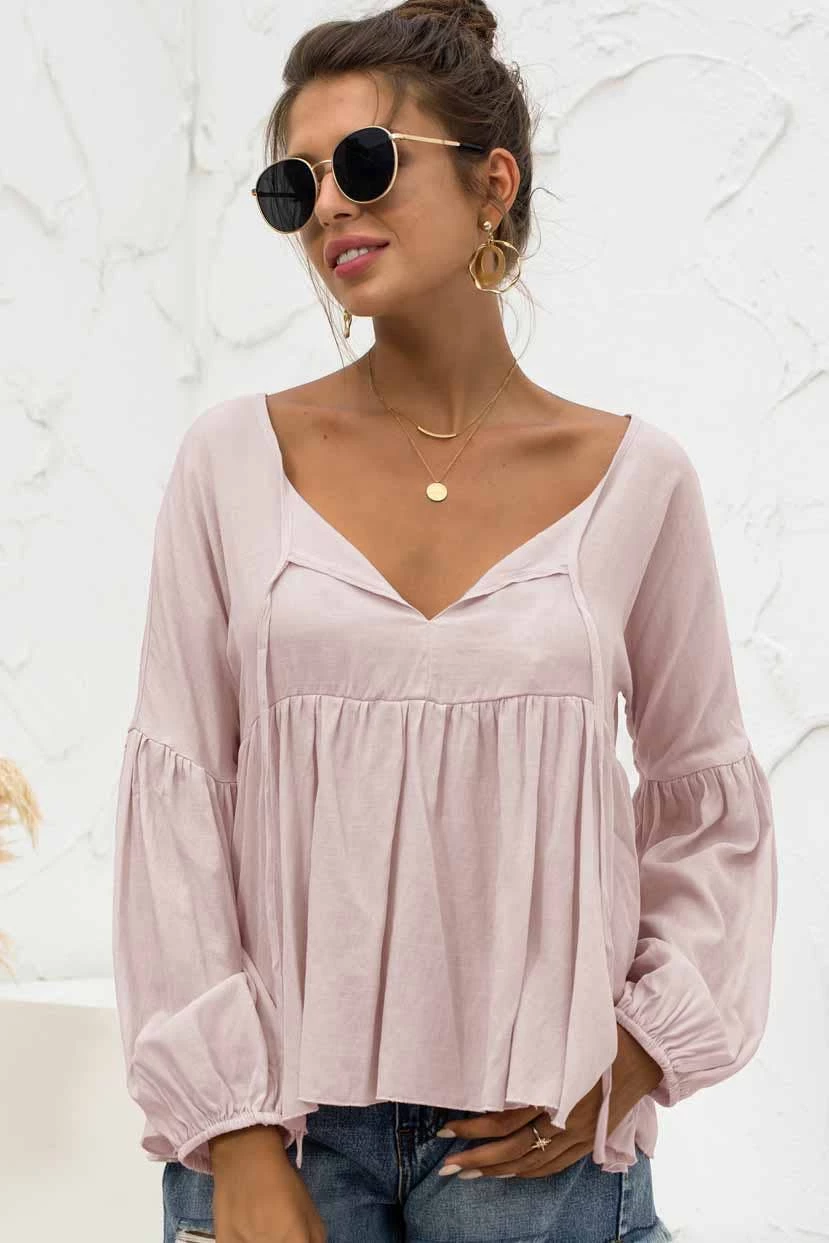 Relaxed, wide-cut bodice features puffy bottom start from waistline.