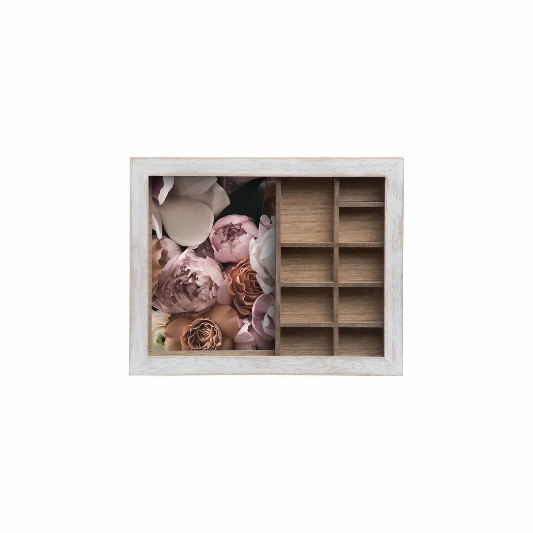 This lovely wooden frame features a photo slot on one side, and little cubbies on the other, perfect for storing treasures. It also comes with both an easel and a sawtooth hook for easy decorating. Displaying your favorite moments for the world to see is easy with the Curio Photo Frame.