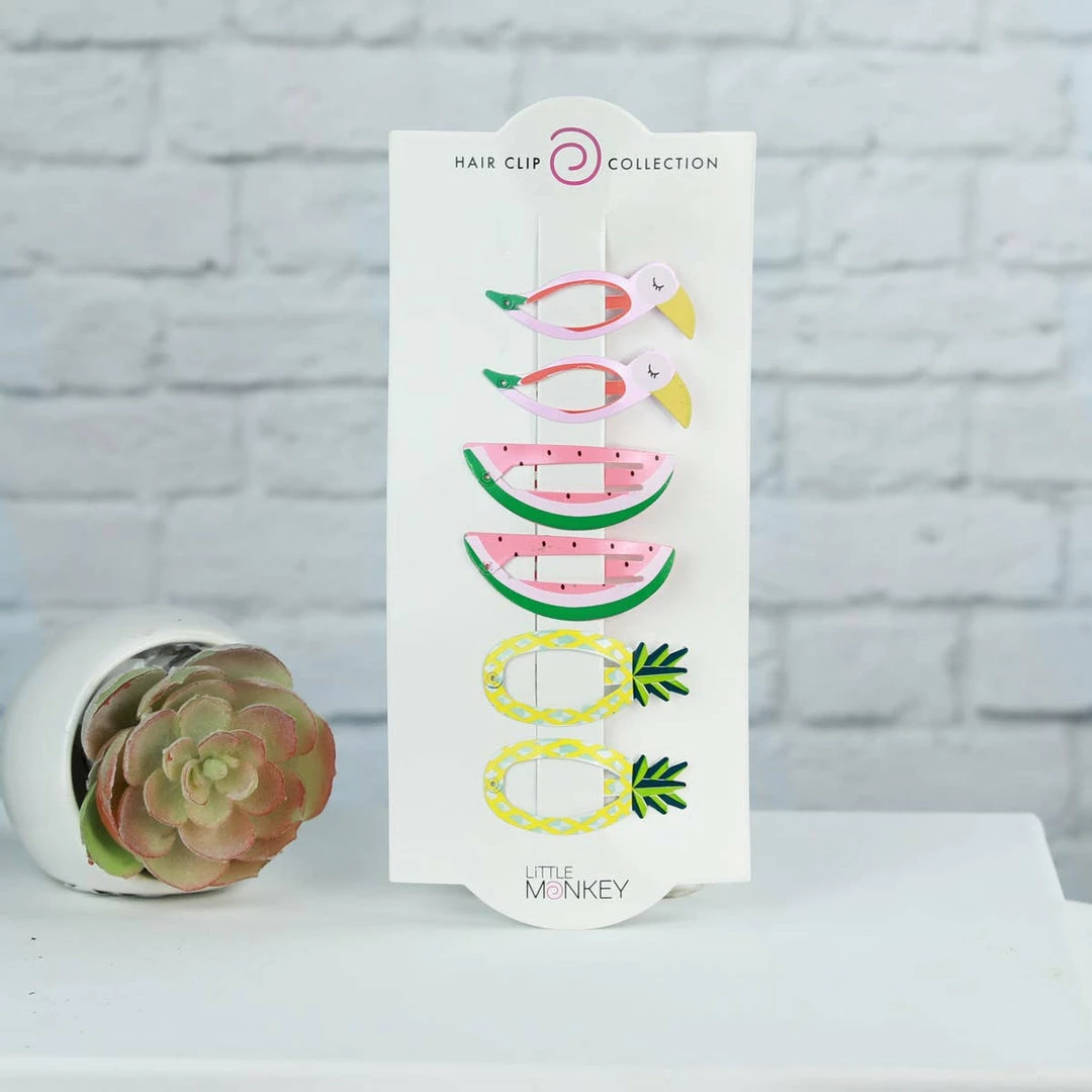 Tropical Rainforest hair Clips feature, Toucan, Watermelon & Pineapple. Adorable to add a little spunk your little ones hair.