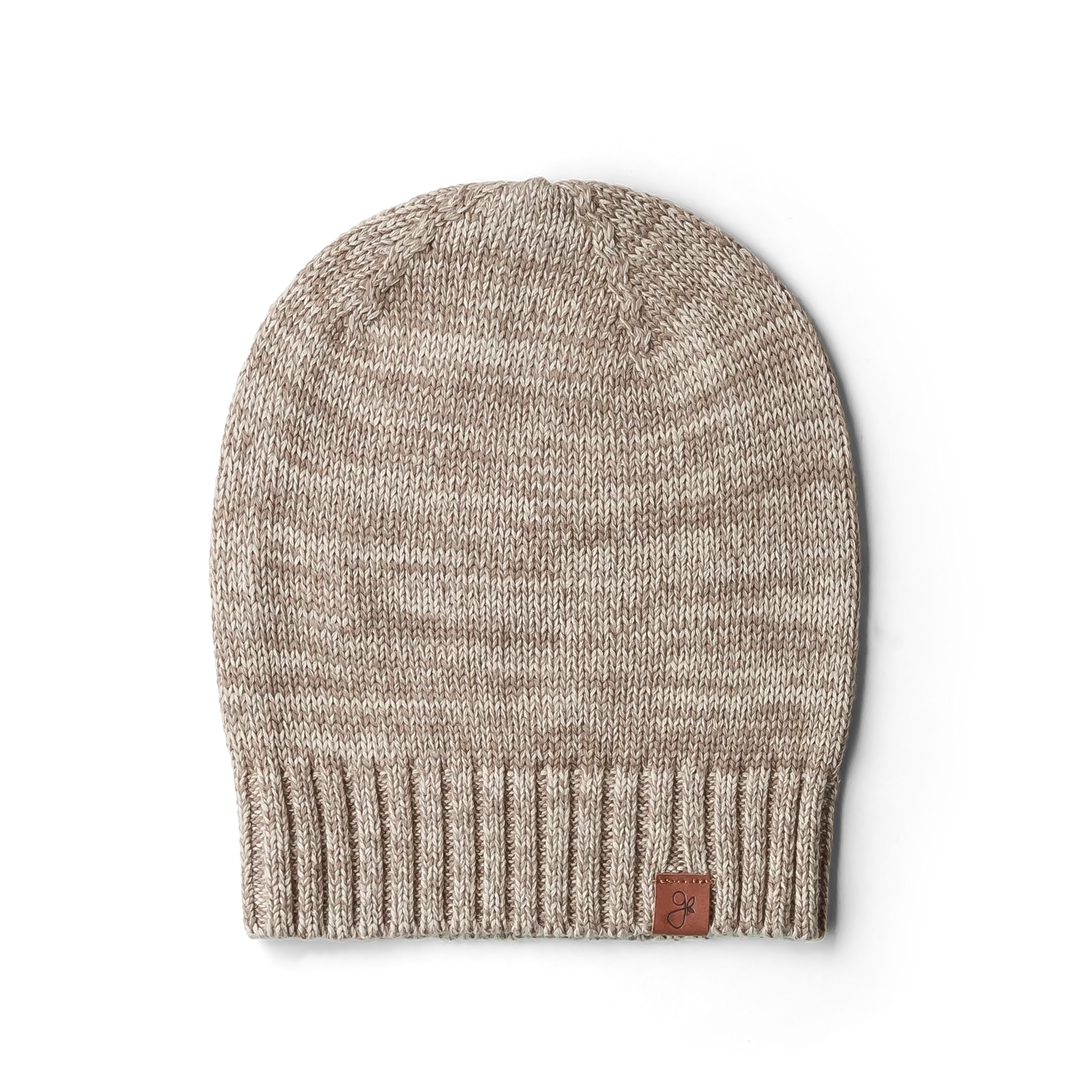 Our beanie will keep your babeβs head cozy no matter the weather outside. Flip the cuff for a longer slouch look 100% organic cotton chunky knit with a leather label.