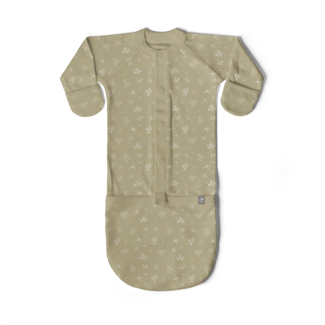 The best organic sleeper with thoughtful features and super-soft fabric. Features our signature integrated mitts with pattern to boost brain development and prevent scratches plus a one-snap foot pocket to quickly change from gown to sleeper (perfect for those 2am diaper changes).