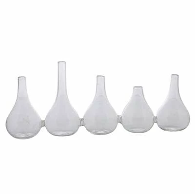 A quintet of joined glass vases comes together as an instant arrangement for single stems and floral cuttings.