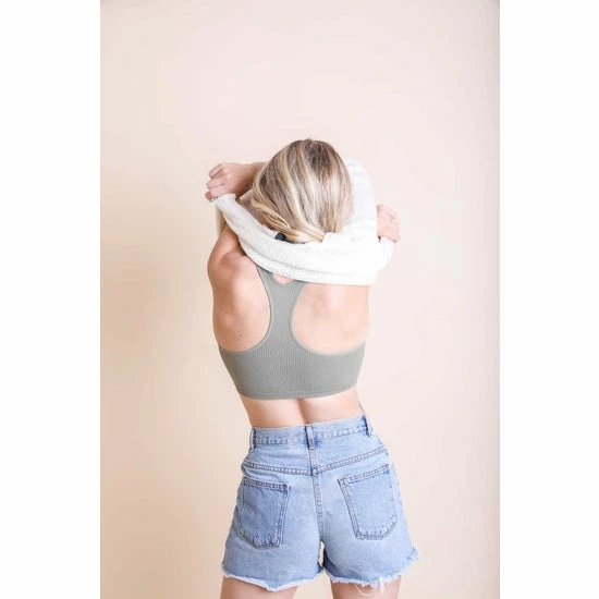 Sage Ribbed Racer Back Bralette 92% Nylon 8% Spandex.