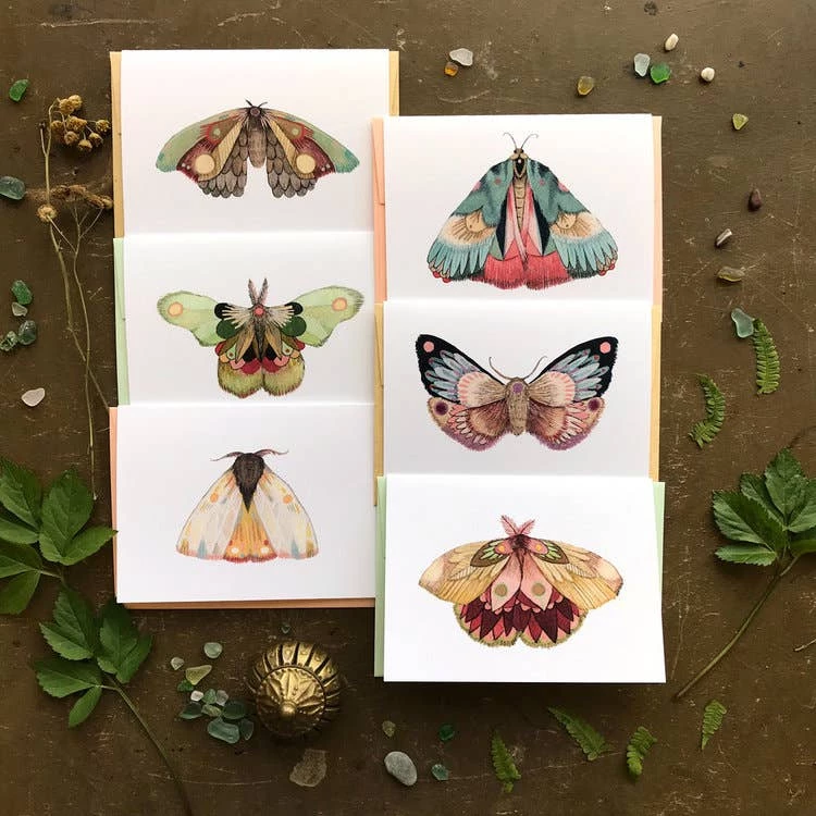 A set of 6 βCollector: Mothβ cards with matching envelopes and a cute little box for storage or gift giving. Each card is approximately 4.75βx3.5β (A1).