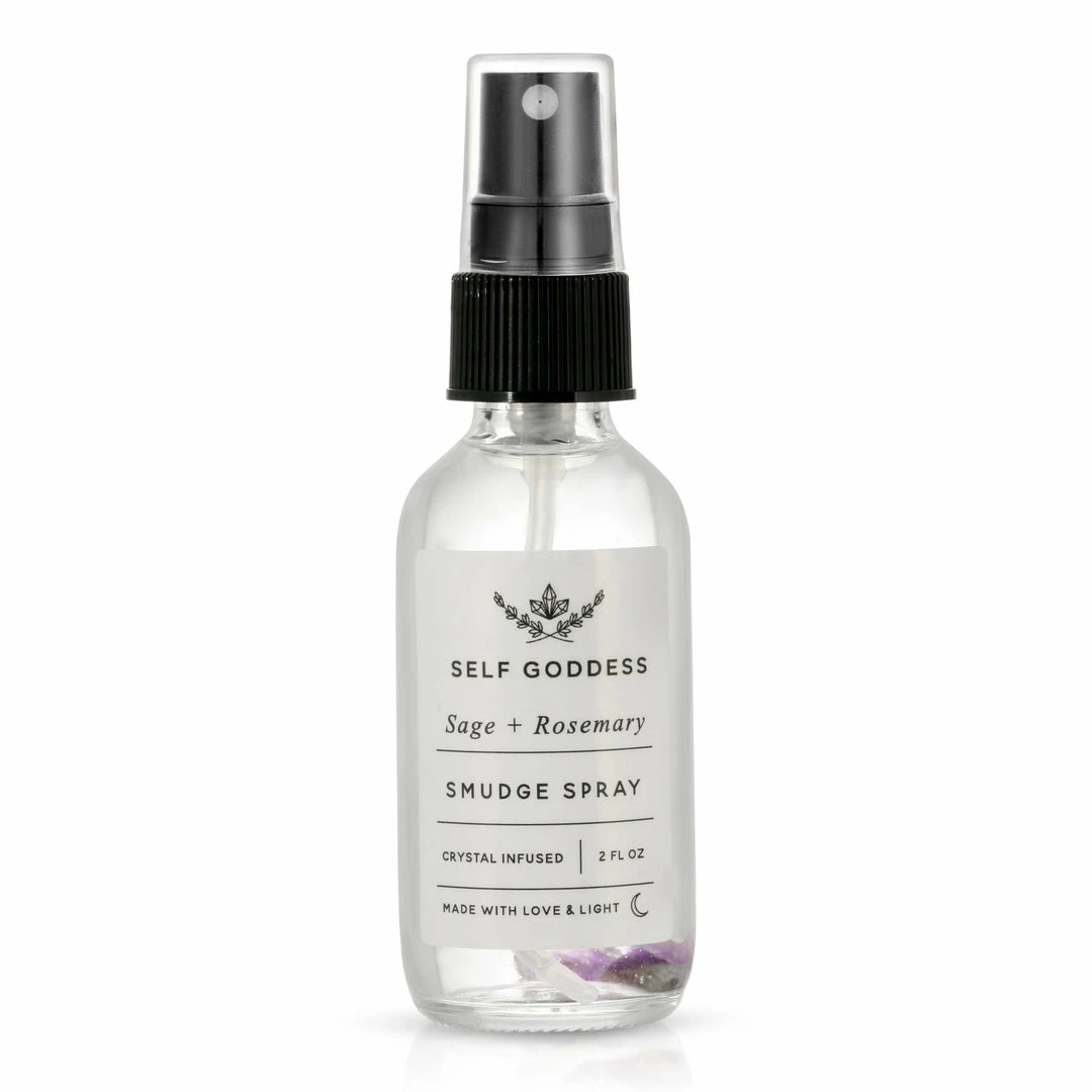 Our Smudge Spray was inspired to eliminate negative energy and create a sacred space whether its for meditation, self-care rituals, yoga, stuck in traffic, even traveling. Traditionally, people have the smudging option to either burn the bundle of dried sage where it emits smoke or you can smudge spray. Some people are allergic to smoke and prefer to use a spray version. Another smudge spray perk is that ashes of the burned sage don’t fly everywhere. Infused with Amethyst Crystal. Size: 2 oz.
