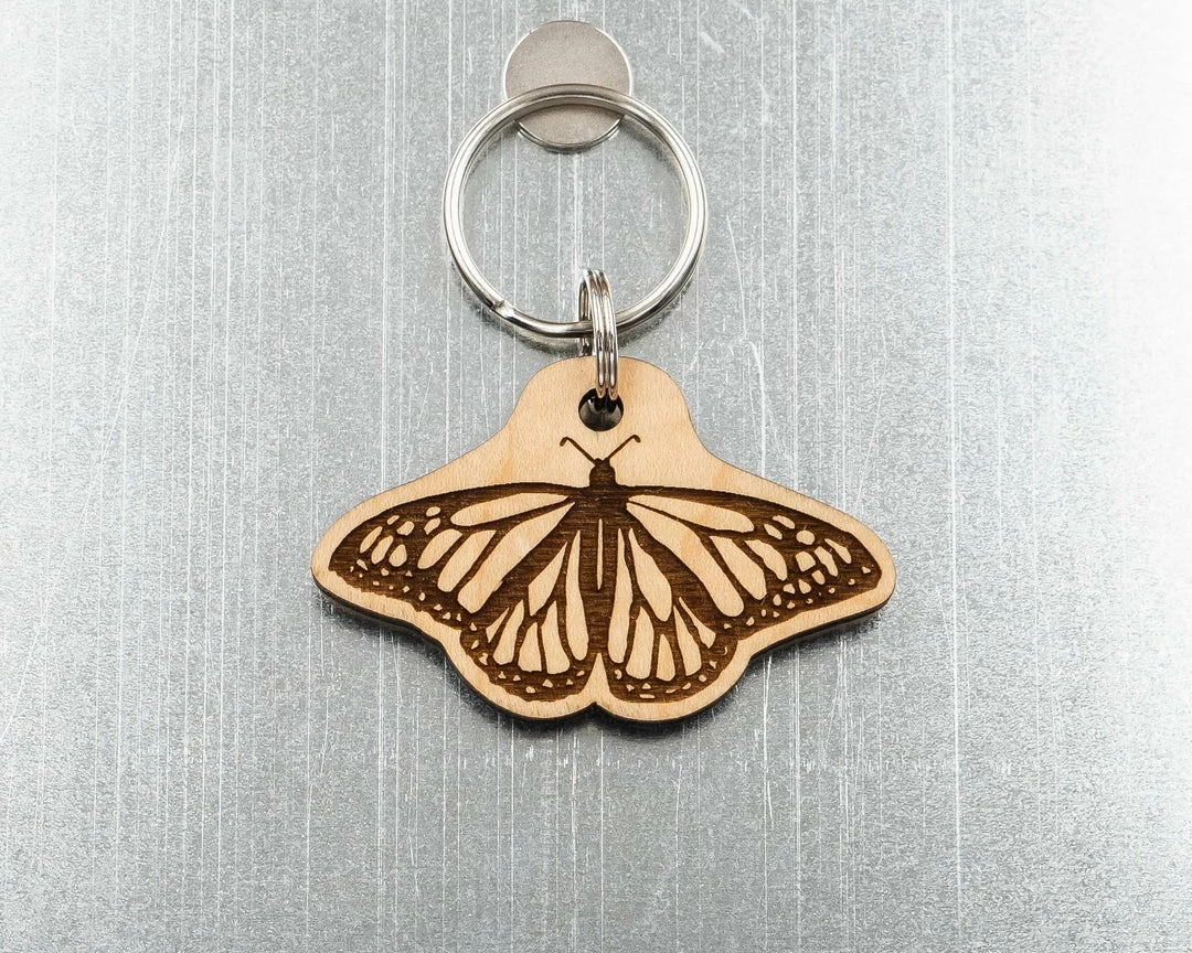 This keychain measures approximately 2.1″x1.4″ with 1″ and .5″ split rings. Made from 3/16″” thick maple veneered wood in our solar powered Santa Cruz, California workshop. Every product we create is made from 100% sustainably harvested, American grown wood. This design was drawn by the artist, it is not clipart.