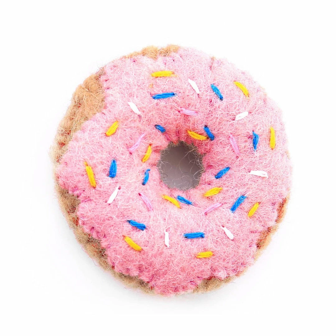 Because every cat needs a delicious donut with sprinkles. Get the full set of all three flavors: Chocolate, Vanilla and Strawberry. Approx. 3.25″ diameter. Made in Nepal by certified Fair Trade artisans using 100% sheep’s wool and natural, Azo-free dyes. Infused with premium organic catnip.