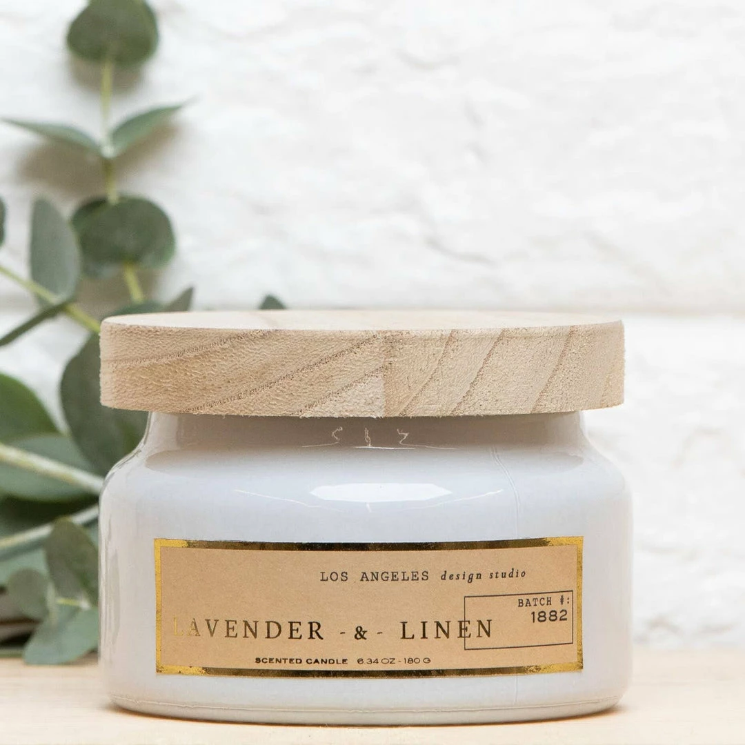6.34 oz Lavender & Linen Scented Small Garden Jar in white.
