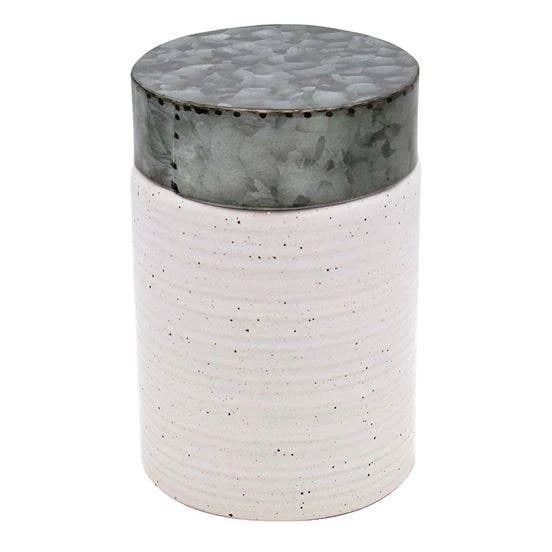 This adorable farmhouse canister is decorative and fully functional! Ceramic canister featuresΒ galvanized metal lid.